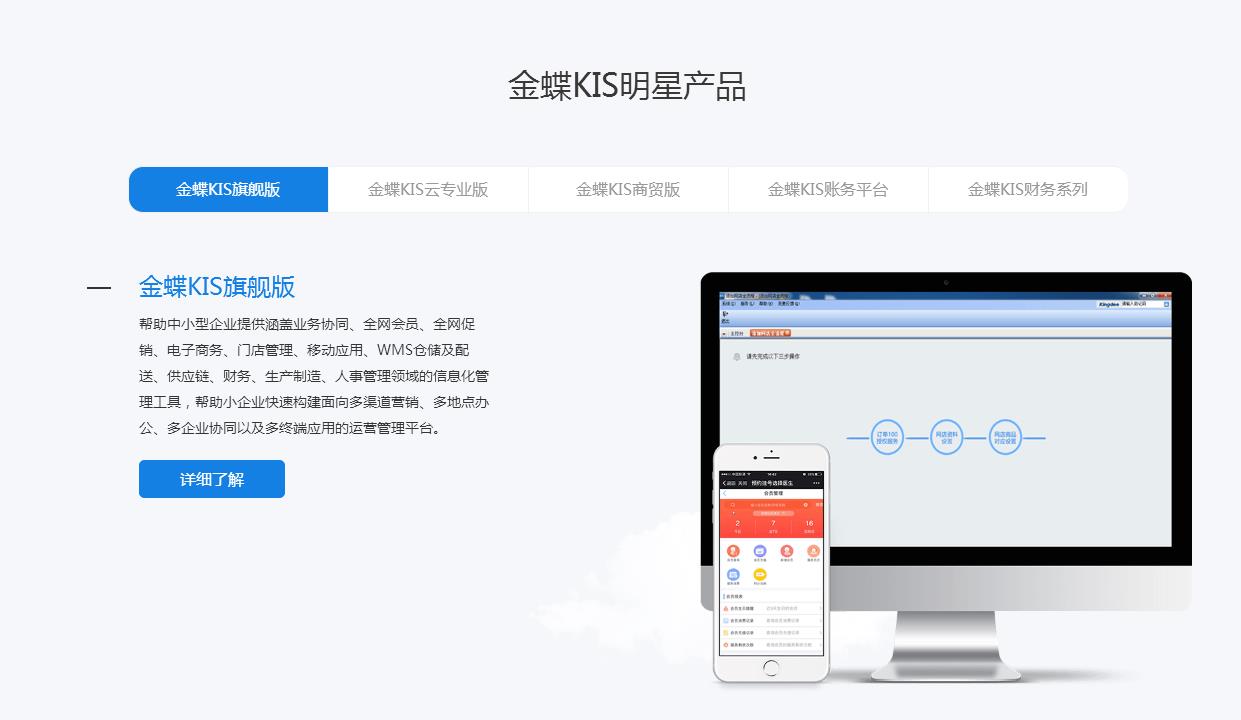 金蝶KIS是面向小微企业量身打造的管理软件品牌,包含多个系列产品,以订单为主线,以财务为核心,通过云之家、微信等移动终端实现对库存、生产、销售、采购、网店、门店等各经营环节的实时管控,帮助企业在做好内部管理的同时,轻松玩转互联网,创新商业模式,赢得更多商机。