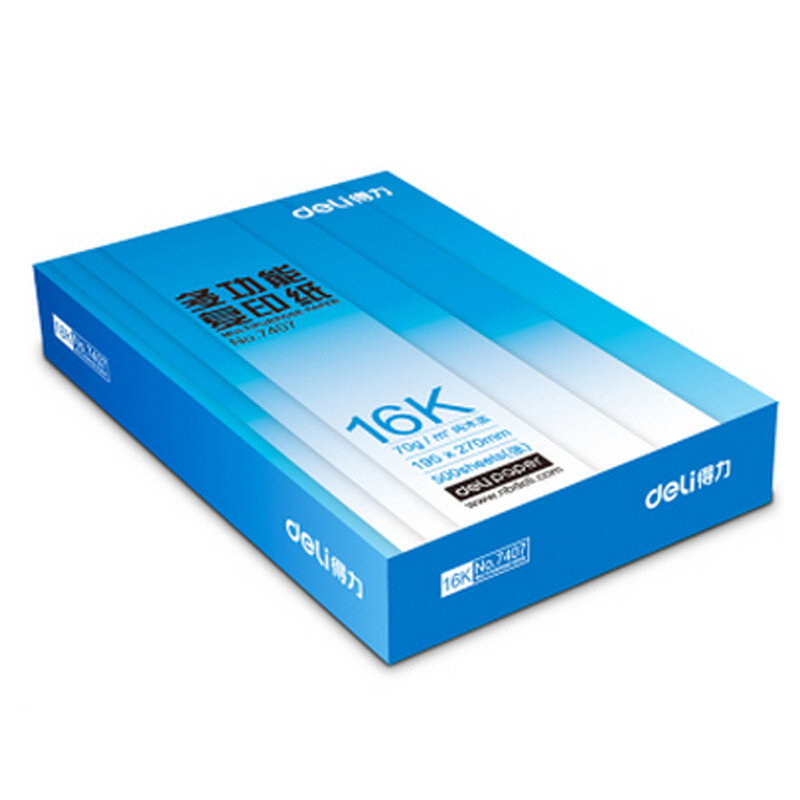 • 商品名称:得力(deli) 7407 16K 莱茵河复印纸 70g 500张/包 单包装