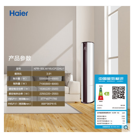• 商品名称:Haier/海尔 KFR-50LW/16UCP22AU1 2匹智能变频圆柱空调柜机
