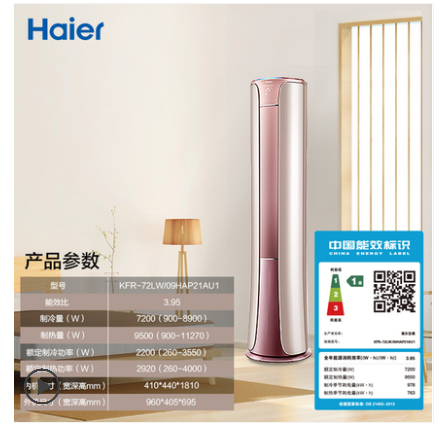 • 商品名称:Haier/海尔 KFR-72LW/09HAP21AU1 海尔3匹变频一级能效柜机空调