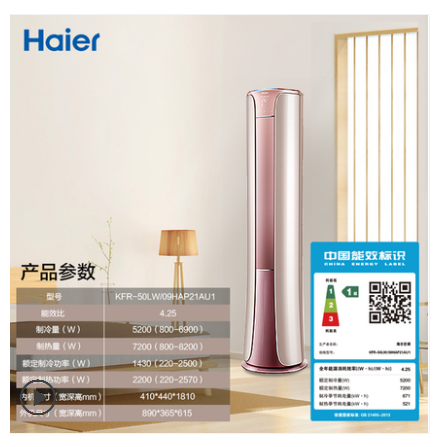 • 商品名称:Haier/海尔 KFR-50LW/09HAP21AU1 海尔2匹变频一级能效柜机空调