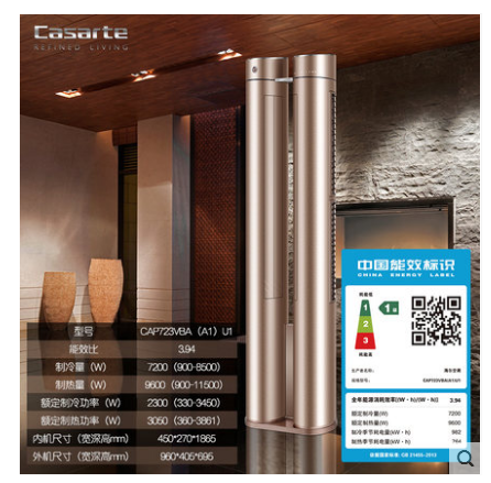 • 商品名称:Casarte/卡萨帝 CAP723VBA(A1)U1柔湿抑菌轻离子净化3匹柜机空调