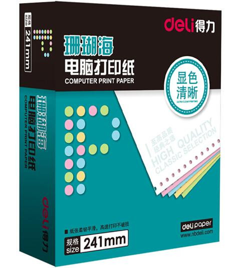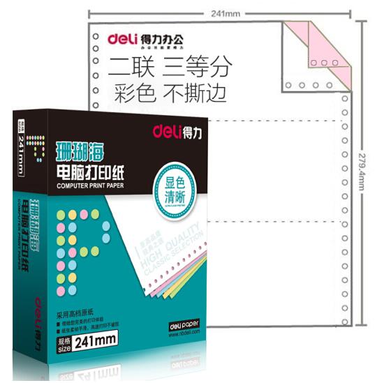 • 商品名称:得力(deli)珊瑚海S241-2-1/3C二层三等分彩色不撕边电脑打印纸(色序:白红 1000页/箱)