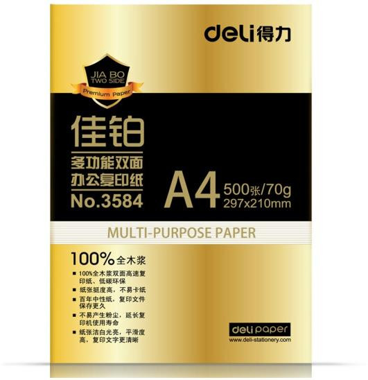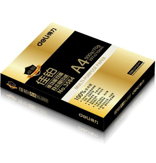 • 商品名称:得力(deli) 3585A4 佳铂复印纸 70g 500张/包 5包/箱