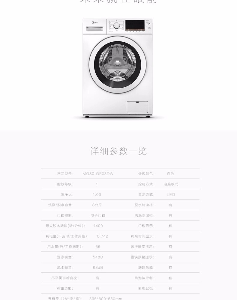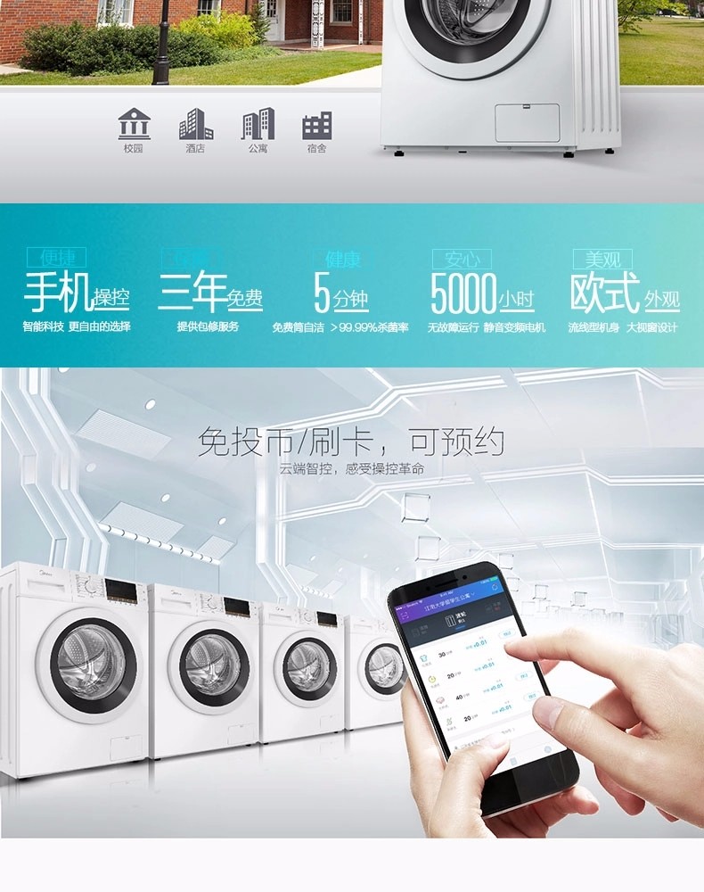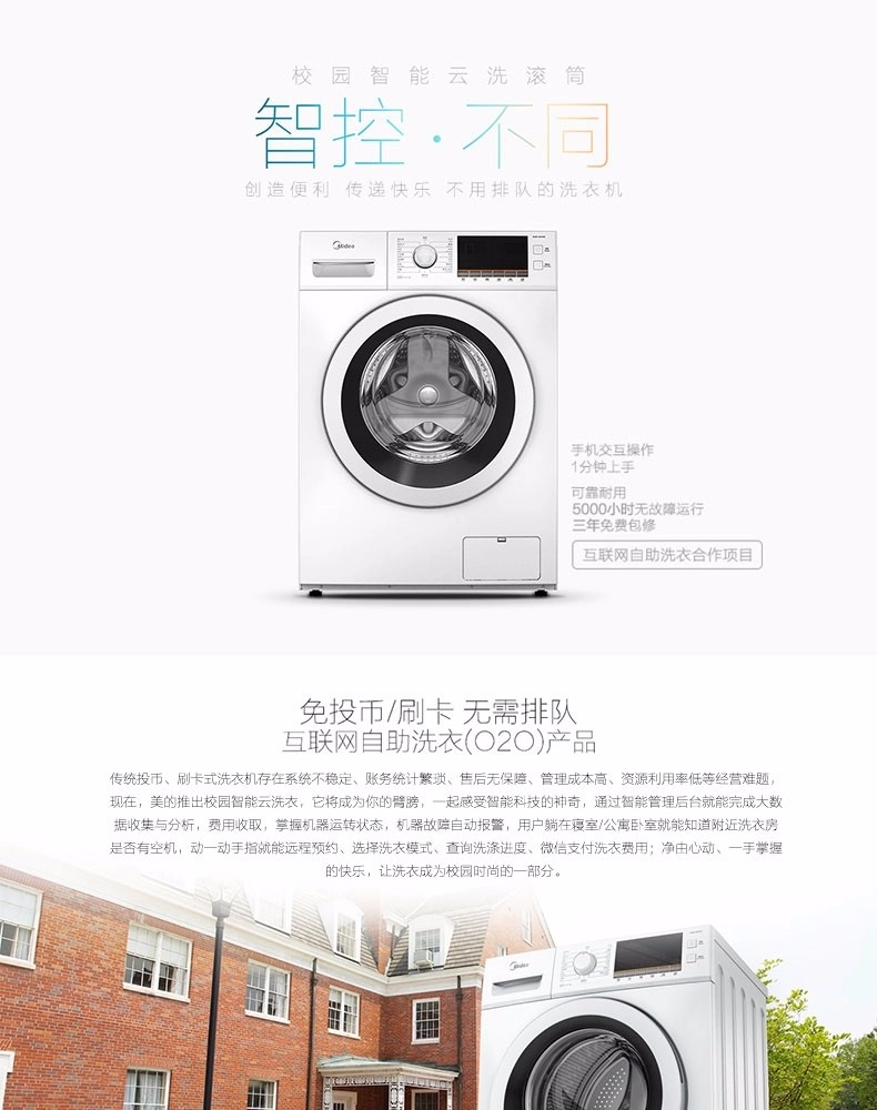 • 商品名称:【校园洗衣机】1400转 筒自洁功能 免投币排队 手机控制 MG80-GF03DW