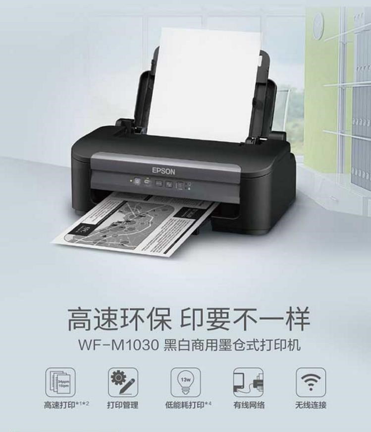 爱普生(EPSON)WF-M1030 墨仓式黑白喷墨打印机 (三年上门服务)
