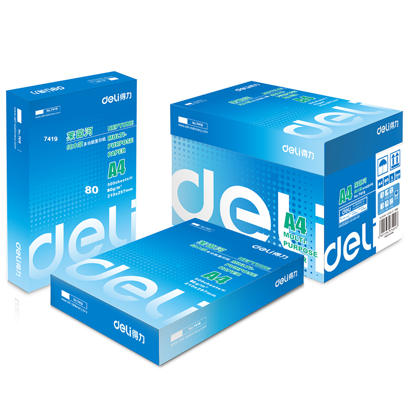 • 商品名称:得力(deli) 7419 莱茵河复印纸 80g/A4/5包/箱